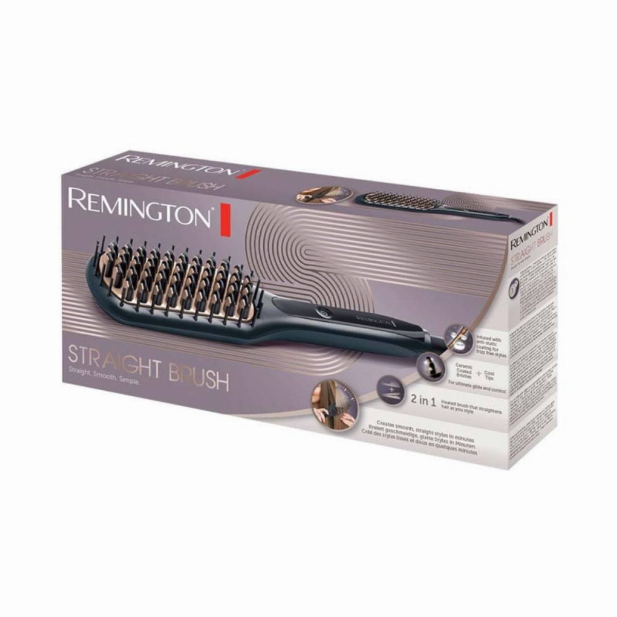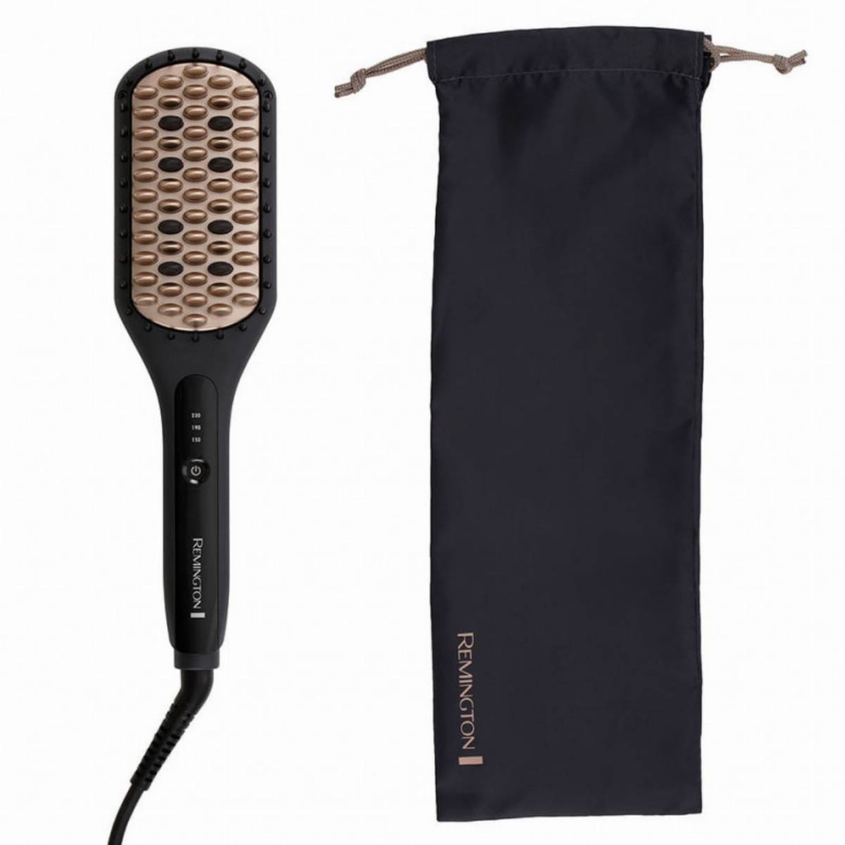 Четка за изправяне на коса Remington CB7400 Straight Brush, 230 C, 3 нива, Керамично покритие, Черен