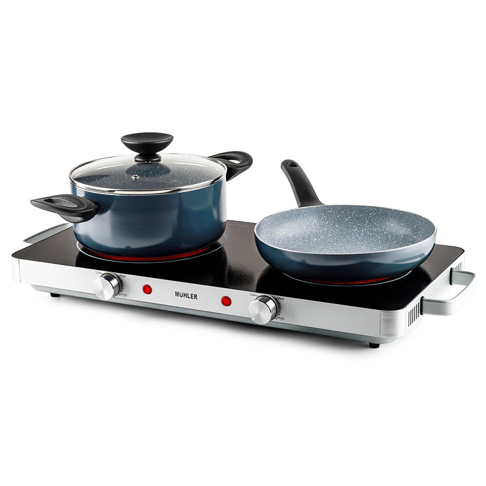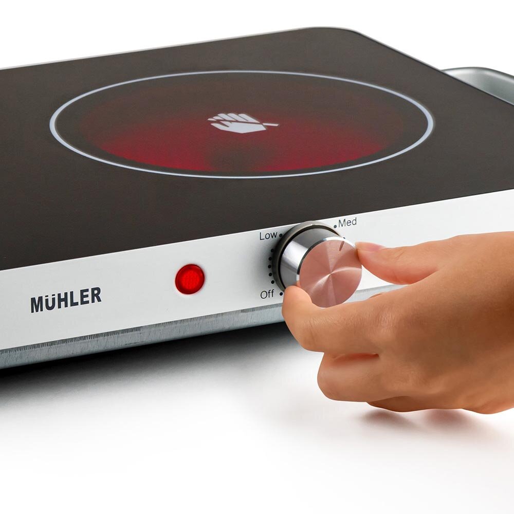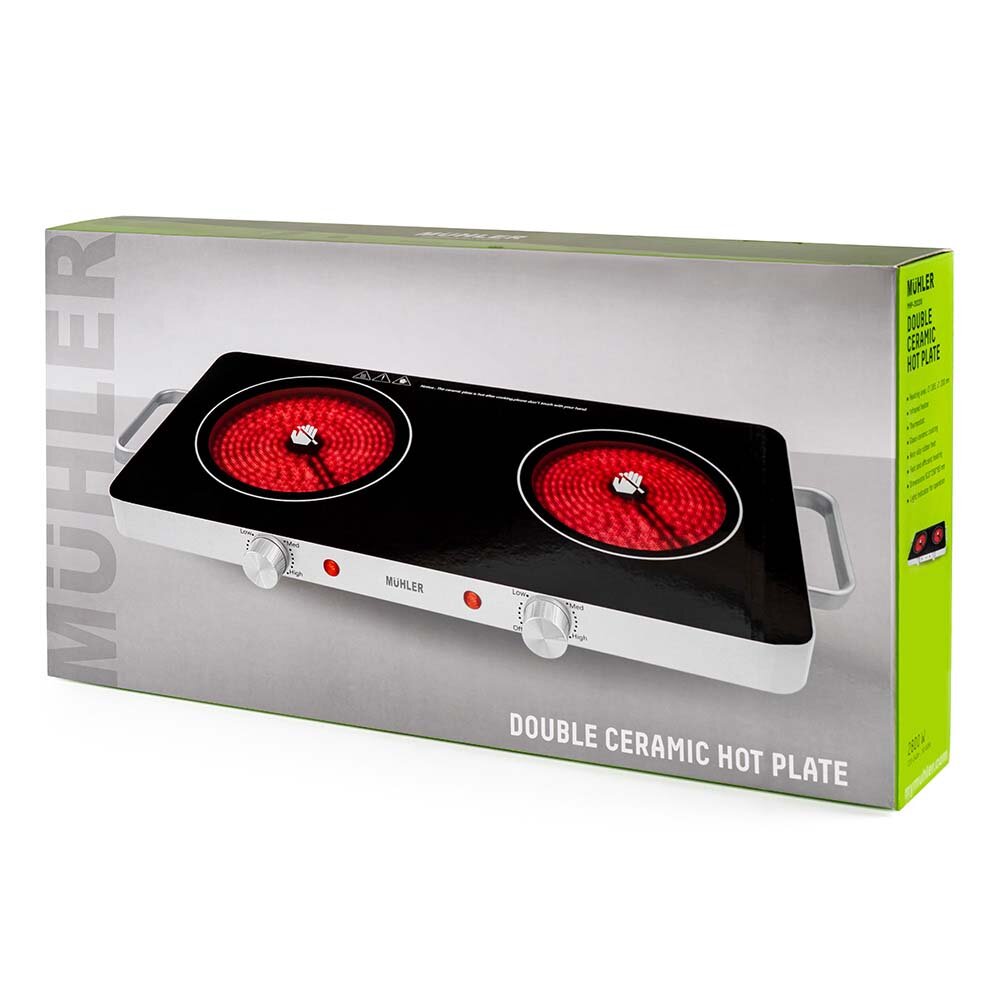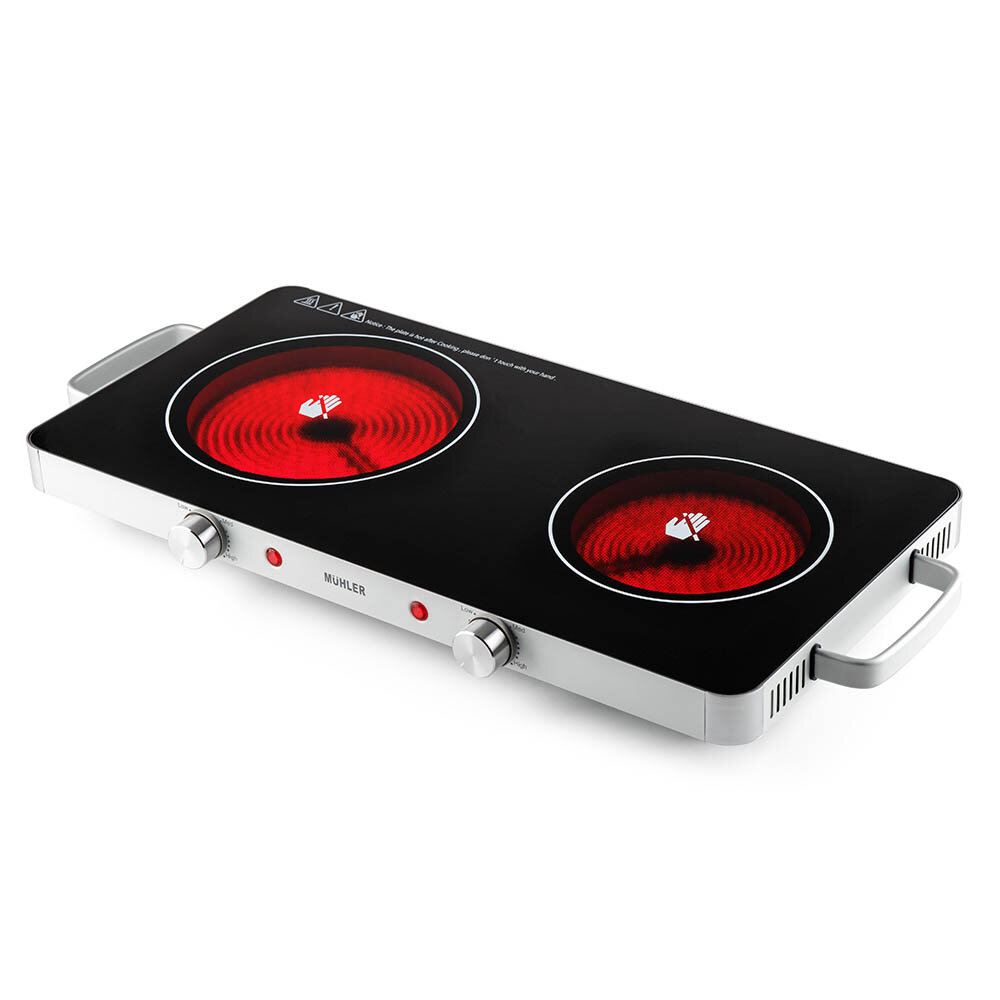 Muhler MHP-2022IS е оборудван с два керамични нагревателни елемента с обща мощност от 2800W (1800W + 1000W), които позволяват бързо и ефективно загряване. Всеки котлон разполага с отделен термостат, което дава възможност за прецизно регулиране на температурата и улеснява готвенето на различни ястия едновременно. Керамичната повърхност осигурява равномерно разпределение на топлината, като намалява риска от прегаряне и осигурява по-добър контрол на процеса на готвене.