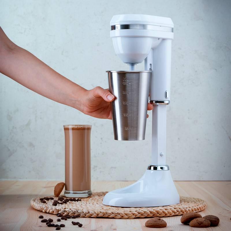 Фрапе миксер Oliver Voltz OV51163E, 100W, Чаша от неръждаема стомана с капацитет 450 мл, 2 скорости, Стоманена бъркалка