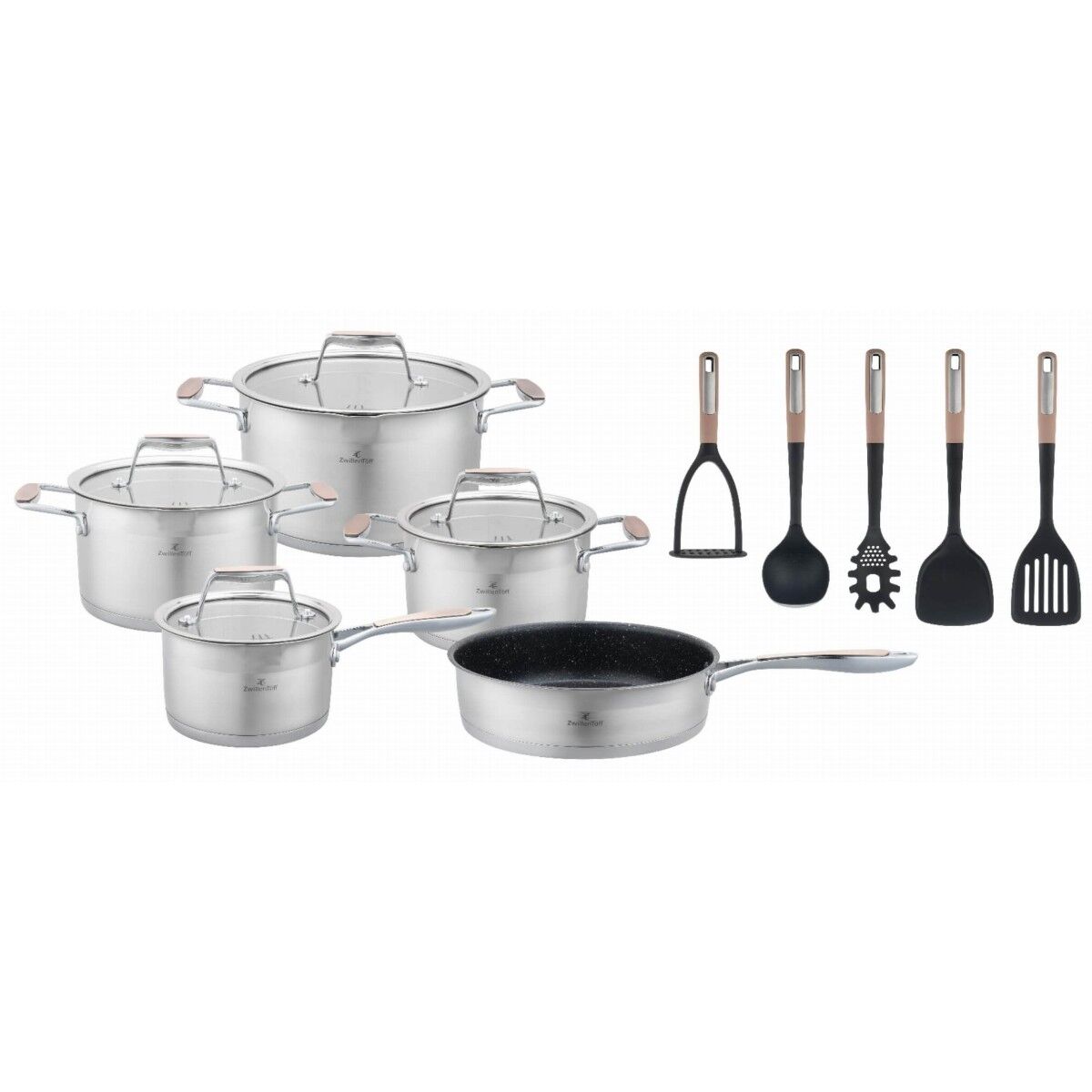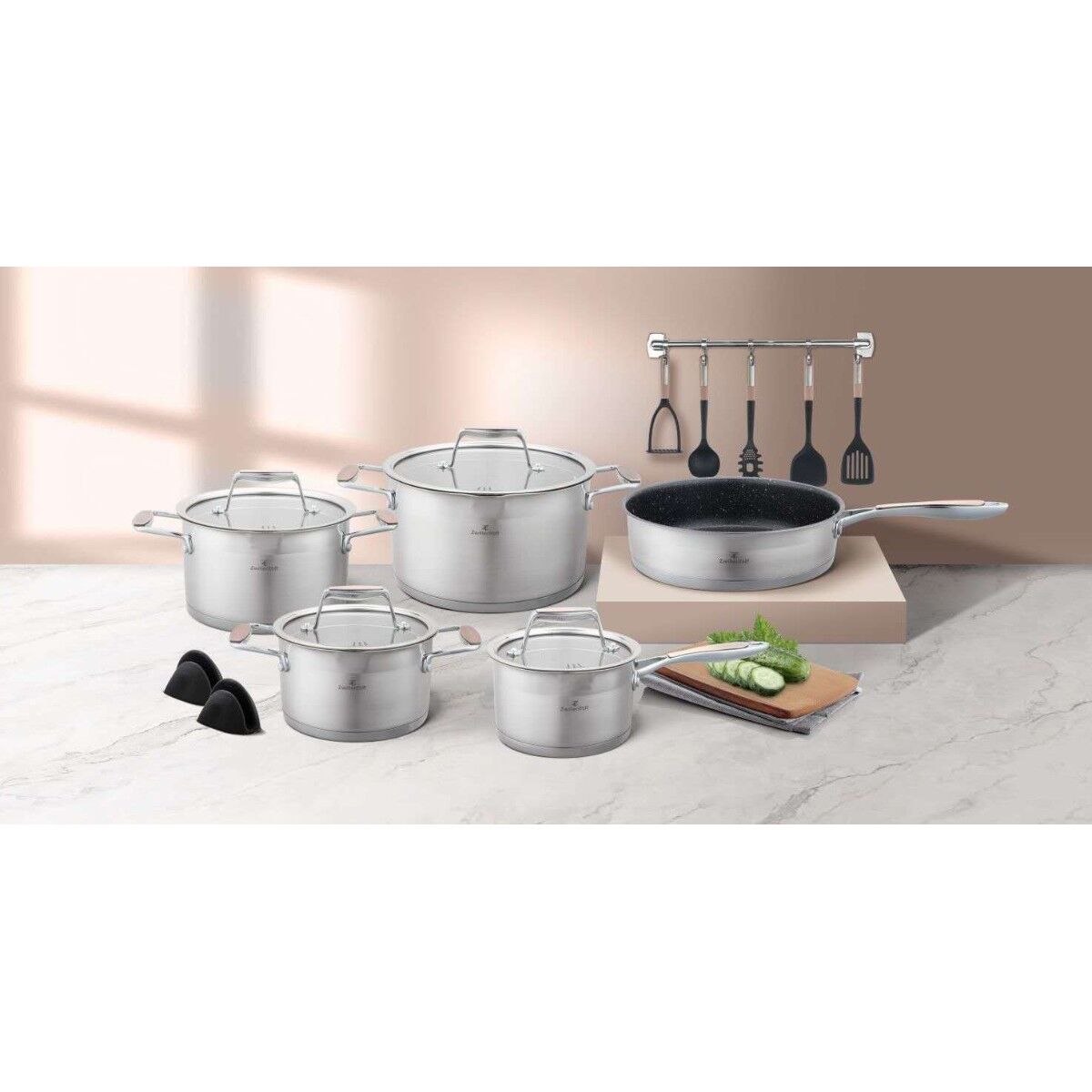 Готварският комплект Zilner ZT-33252 е създаден за взискателни потребители, които не правят компромис между качество, стил и удобство. Изработен от висококачествена неръждаема стомана, той съчетава издръжливост с елегантен външен вид. Многослойното дъно и универсалната съвместимост с различни видове котлони го правят незаменим помощник в кухнята.