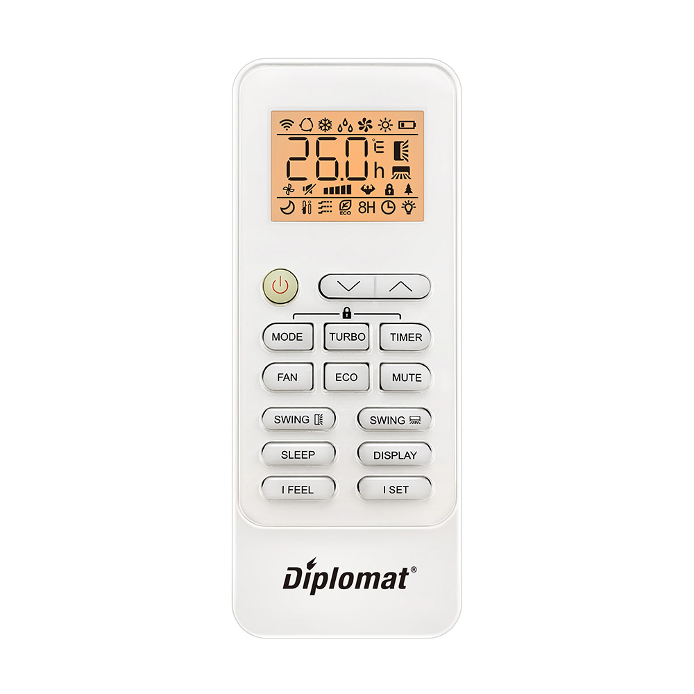 С вграден WiFi модул, DIPLOMAT DAW-240X може да бъде управляван дистанционно чрез мобилно приложение. А с функциите за самопочистване, режим „сън“, таймер, I Feel и автоматично рестартиране, получавате пълен контрол с едно докосване.