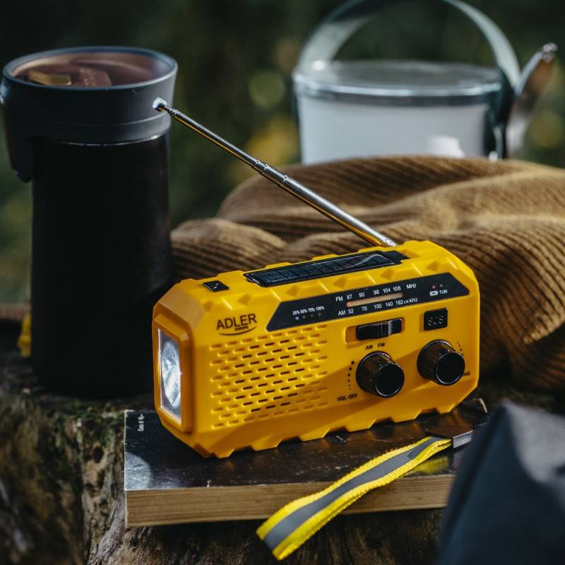 Преносимо къмпинг радио Adler AD 1197, С динамо, 1200 mAh, AM/FM, Жак, Оранжев/Черен